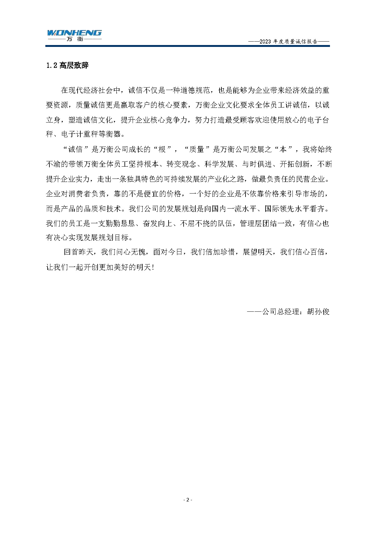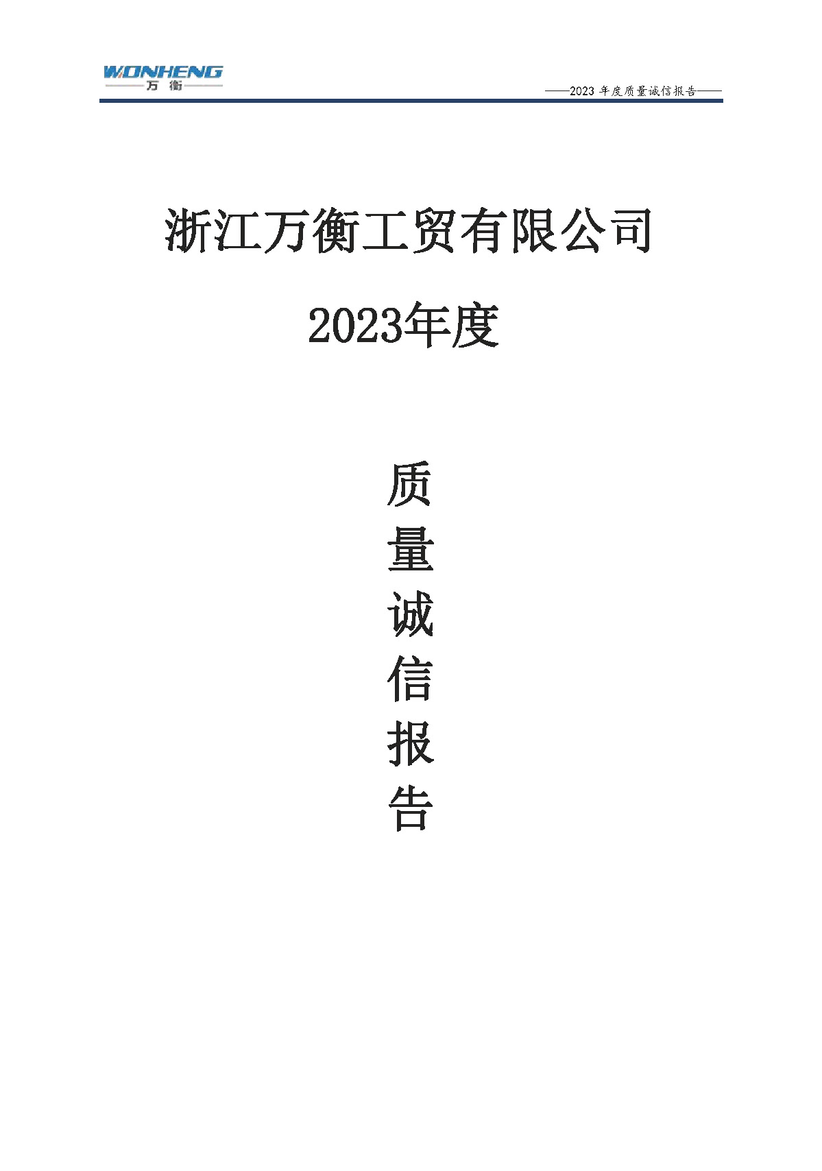 浙江萬衡工貿有限公司2023年度質量誠信報告