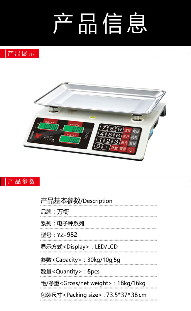 永州衡器創(chuàng)建于1988年,三十年間, 隨著改革開放的浪潮,現(xiàn)已有相當(dāng)?shù)囊?guī)模,擁有雄厚的產(chǎn)品開發(fā),設(shè)計(jì),工藝制造技術(shù)和豐富的衡器生產(chǎn)、銷售經(jīng)驗(yàn)。現(xiàn)主要產(chǎn)品有:電子計(jì)價(jià)秤、電子臺(tái)秤、電子語音報(bào)價(jià)秤、電子認(rèn)提健康秤、電子廚房秤、電子表頭、電子吊鉤秤等...